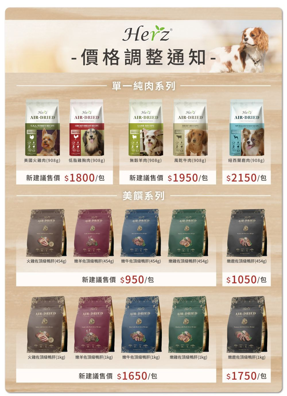 赫緻低溫風乾糧「調漲定價」說明