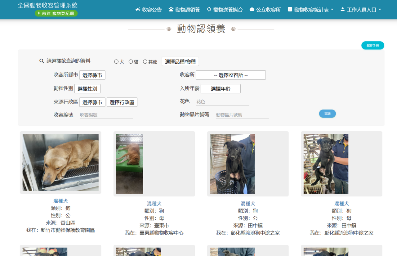 台灣目前也有很多動物收容線上網站,像是全國動物收容管理系統,可以先上網看看是否有心儀的狗狗,再前往收容所。