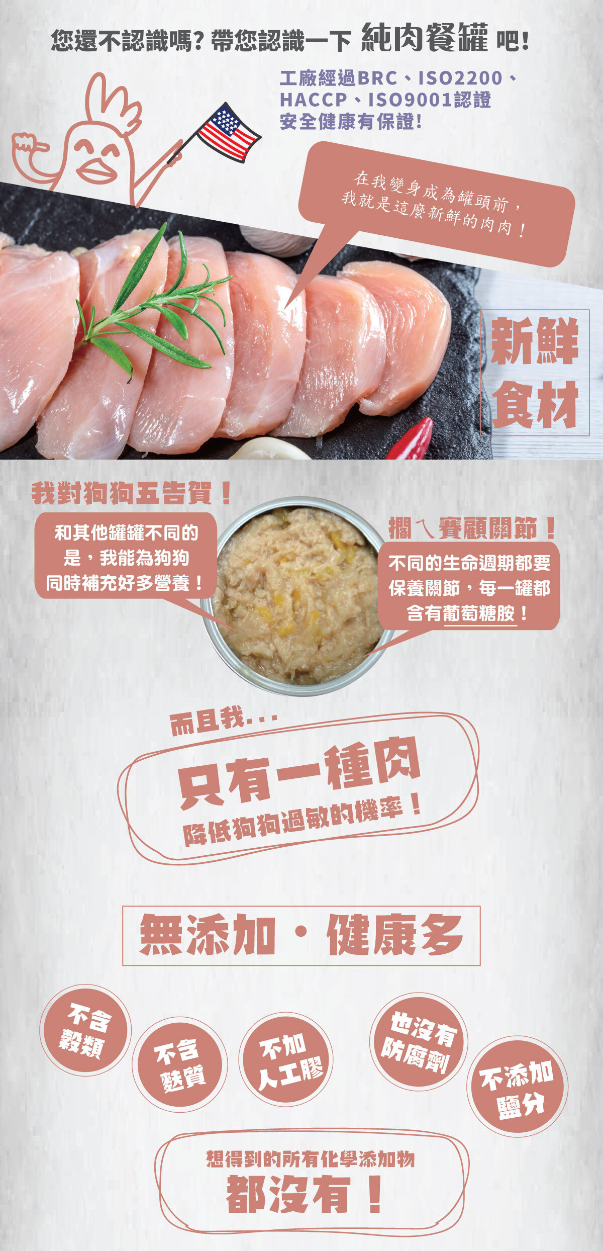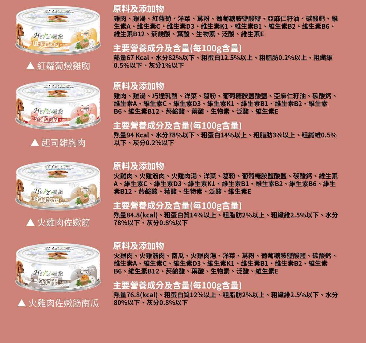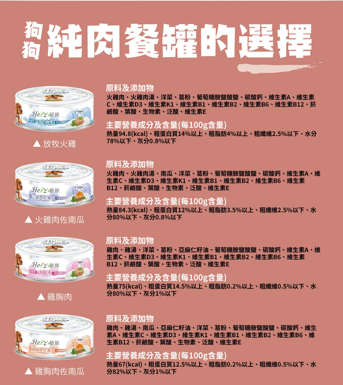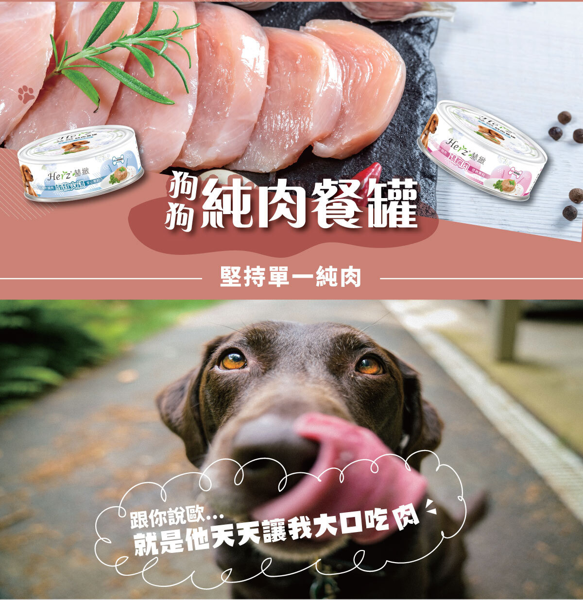 Herz赫緻純肉餐罐除了仍堅持原有的單一純肉,不含動物骨骼及內臟👍,還特別添加了葡萄糖胺,來維護寶貝的關節活動力😊
